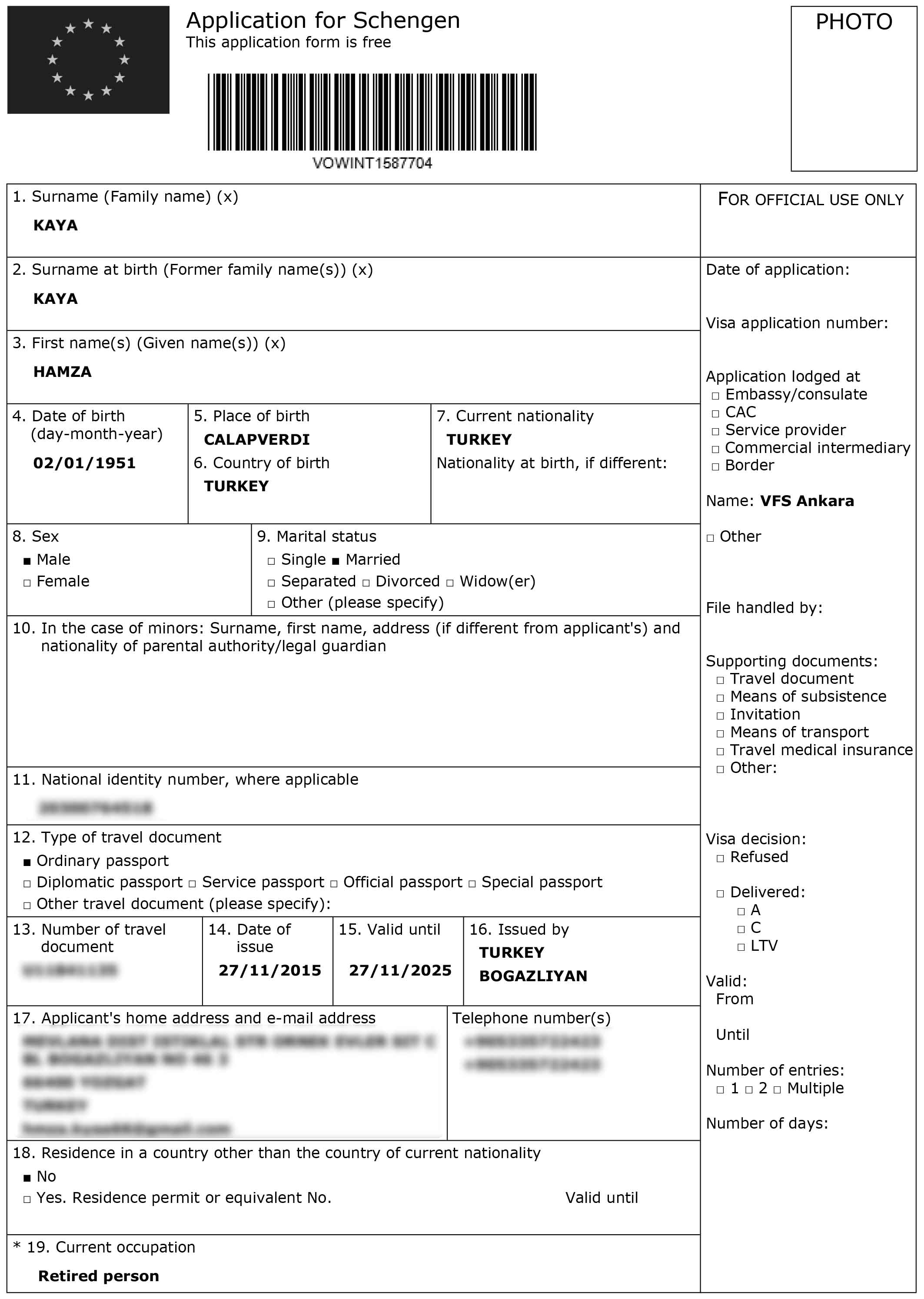Bu formda sunmuş olduğunuz tüm bilgiler eksiksiz ve doğru olmalıdır. Gerekli belgelerle yapılacak başvurularda öncelikle vize randevusu alınması gerekmektedir. Yönetmelikte evrakların eksiksiz bir şekilde toplanması gerekmektedir.